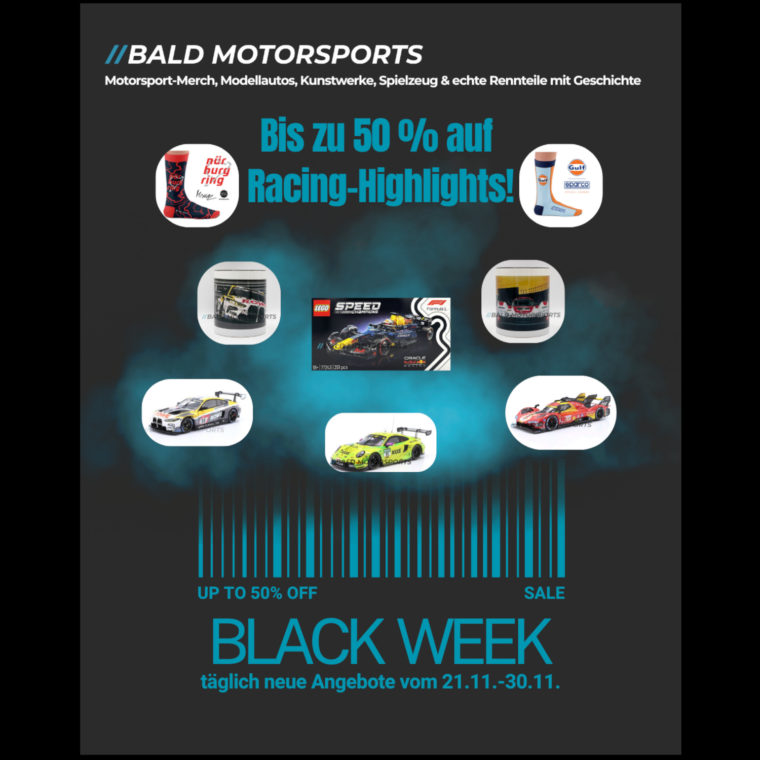 Bis zu 50 % Rabatt auf Modellautos, Merch, Kunstwerke & mehr – nur solange der Vorrat reicht!